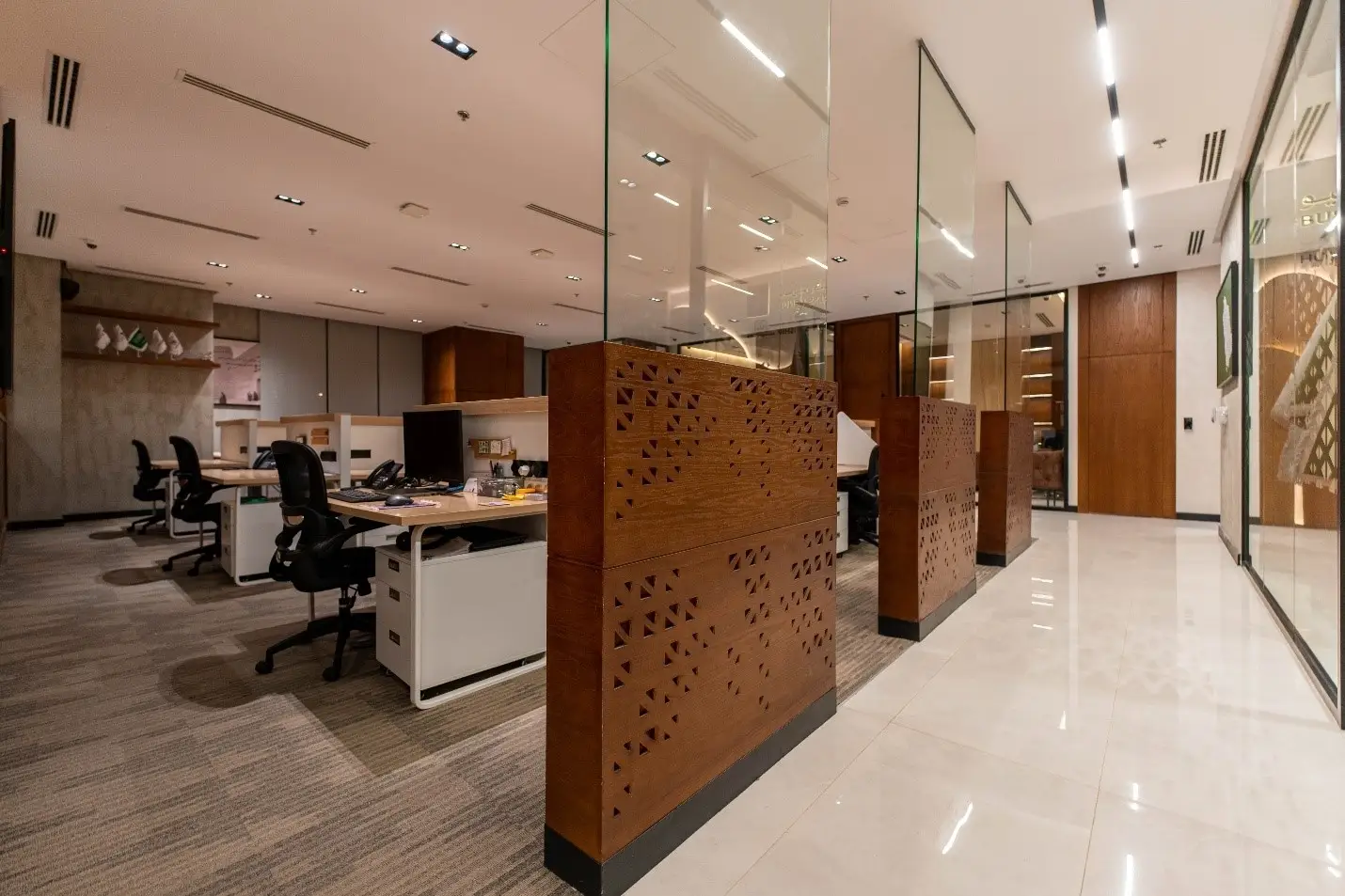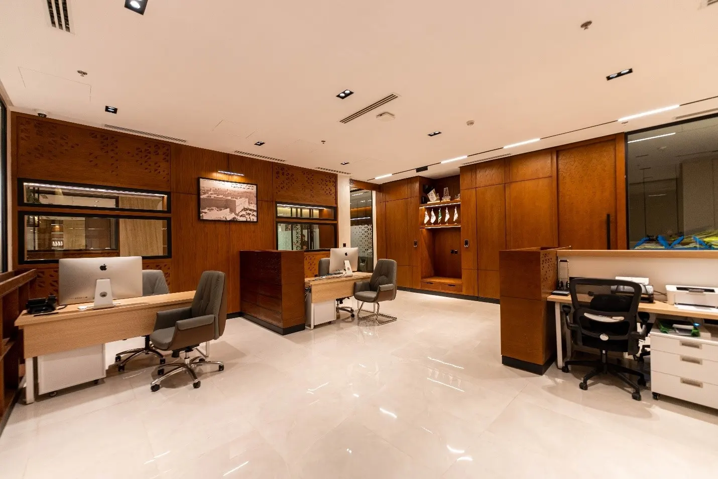 This project was inspired by traditional Najdi architecture, blended with a modern aesthetic to reflect the company’s visual identity.