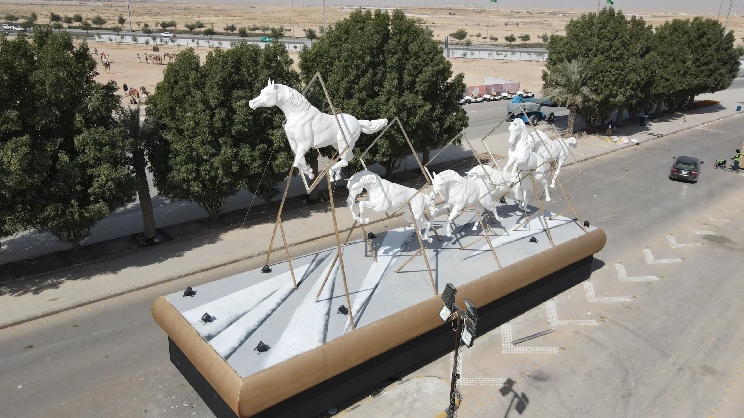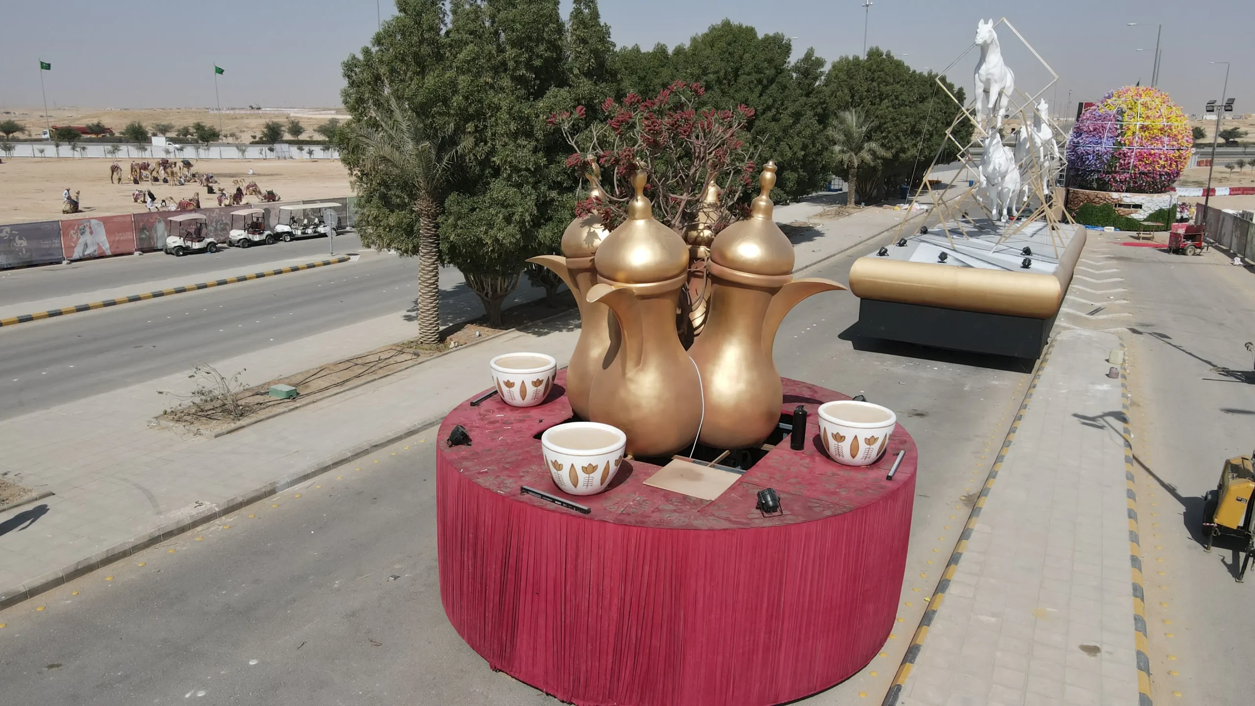 The Founding Day parade was constructed with three removable grandstands and 48 booths for various restaurants and cafes in a record time of no more than five days, contributing to a unique experience for visitors.